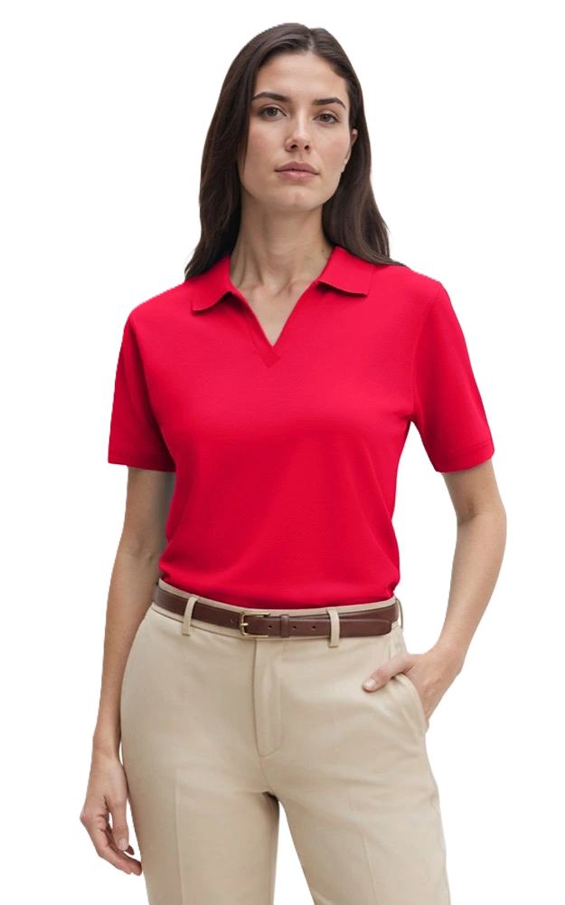 LADIES SHORT SLEEVE V-NECK - RED LARGE SOLID - Quote