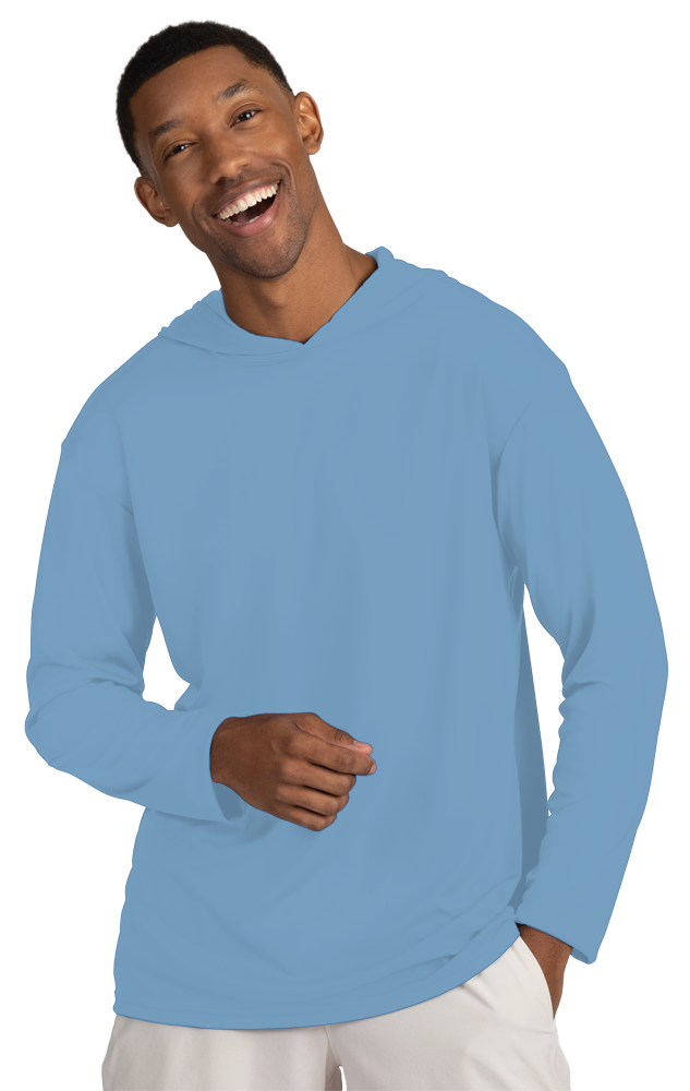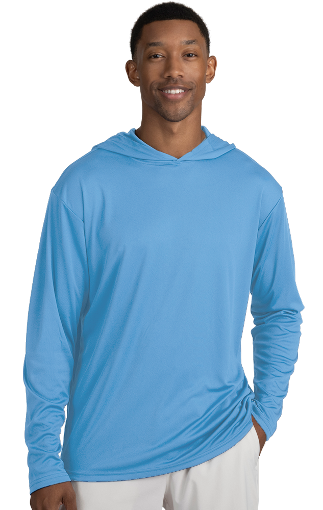BLU-X-DRI LONG SLEEVE HOODED TEE LIGHT BLUE LARGE SOLID - Quote