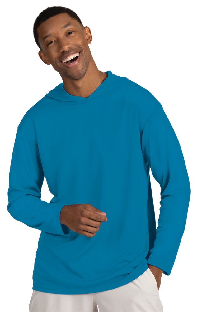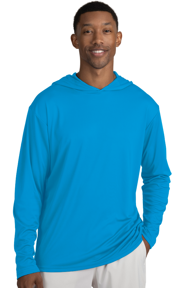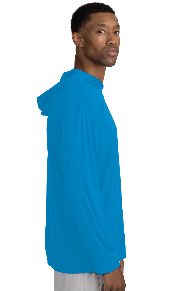 BLU-X-DRI LONG SLEEVE HOODED TEE TURQUOISE SMALL SOLID - Quote